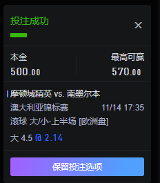 主题 : 11/14 17:35 澳大利亚锦标赛 滚球